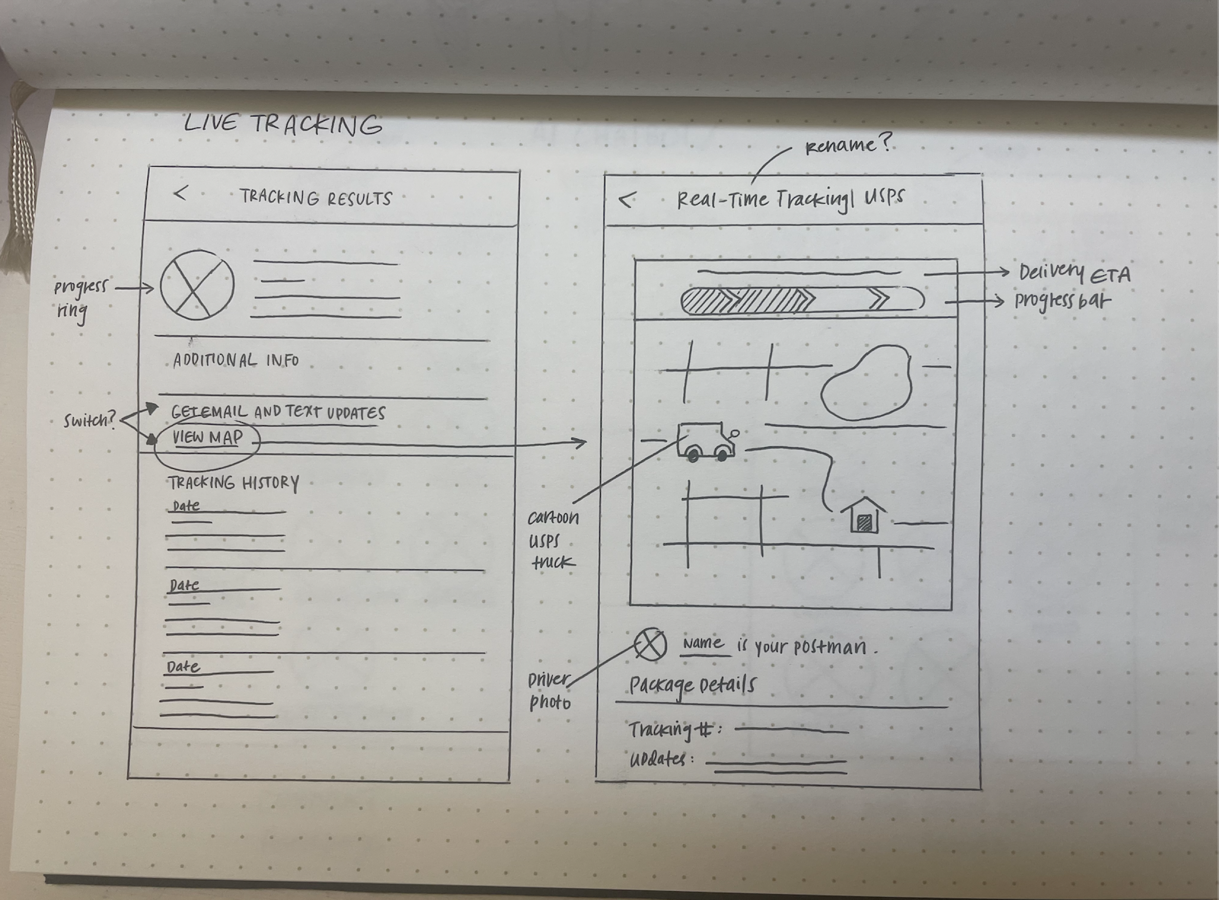 We aimed to streamline the package tracking experience for USPS users through the integration of a live tracking system. This implementation would provide users with real-time visibility into the status and location of their packages, enabling them to effortlessly track their deliveries from dispatch to delivery.